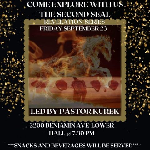 Join us this Friday September 23, at 2200 Benjamin Avenue in the lower hall for the second part of our riveting Revelation Bible Study series.