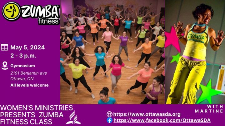 Women’s Ministries presents “Zumba with Martine” at 2191 Benjamin Avenue (gymnasium), from 2:00 p.m. to 3:00 p.m. A fun opportunity for physical activity and relationship building.